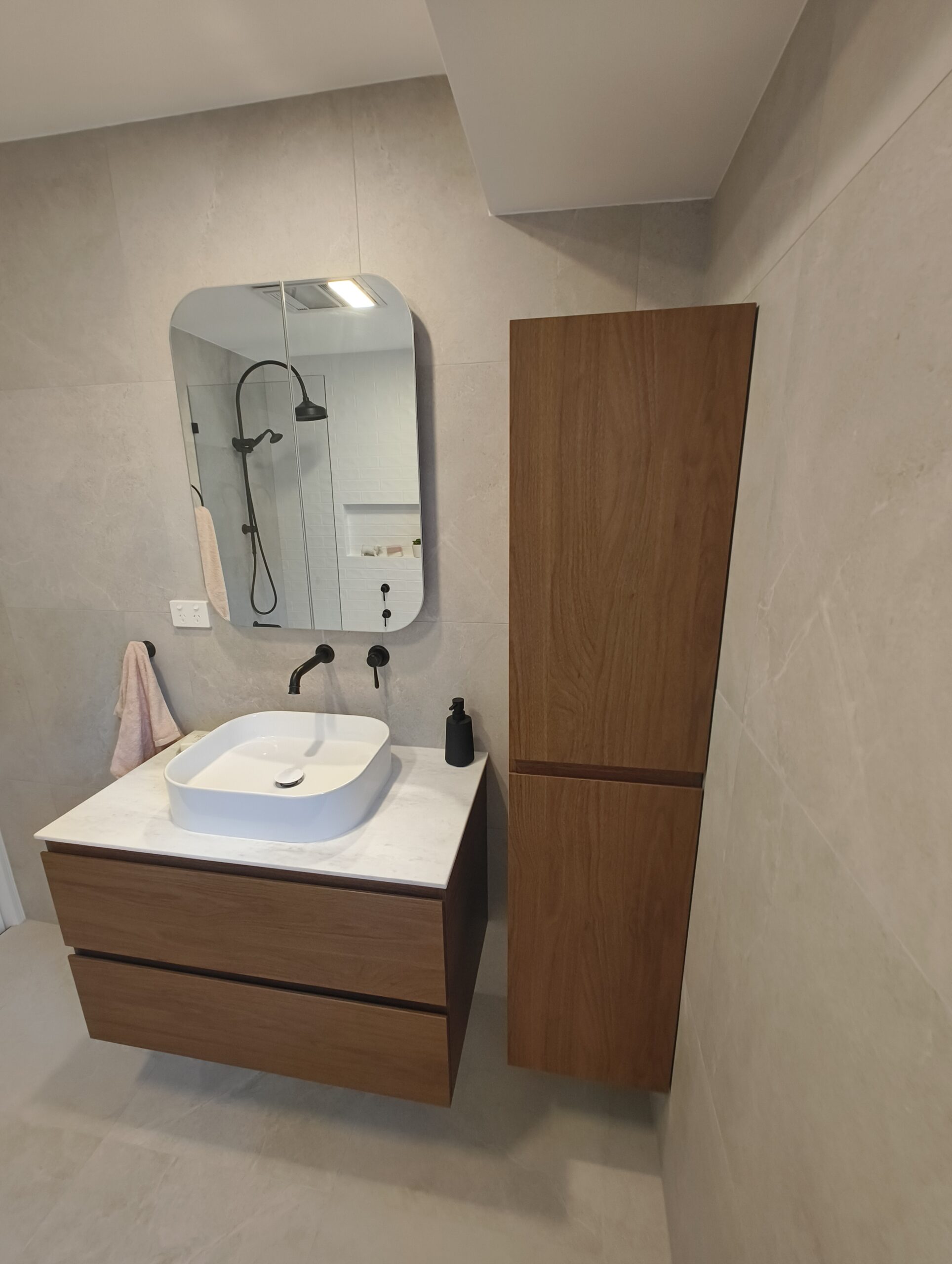 What was once a cramped, outdated bathroom is now a light-filled, highly functional space that the family absolutely loves. Every design decision—from the cavity slider to the repositioned plumbing to the carefully chosen tallboy—works together to deliver a bathroom that’s both beautiful and supremely practical.