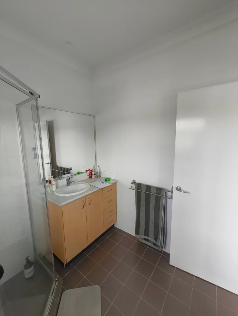 To further optimise the floor plan, we replaced the bulky hinged door with a sleek cavity slider. We also shifted the door opening slightly to the left. This minor structural tweak was essential to ensure the new, larger vanity didn’t encroach on the doorway, creating a better flow and making the room feel far more spacious.